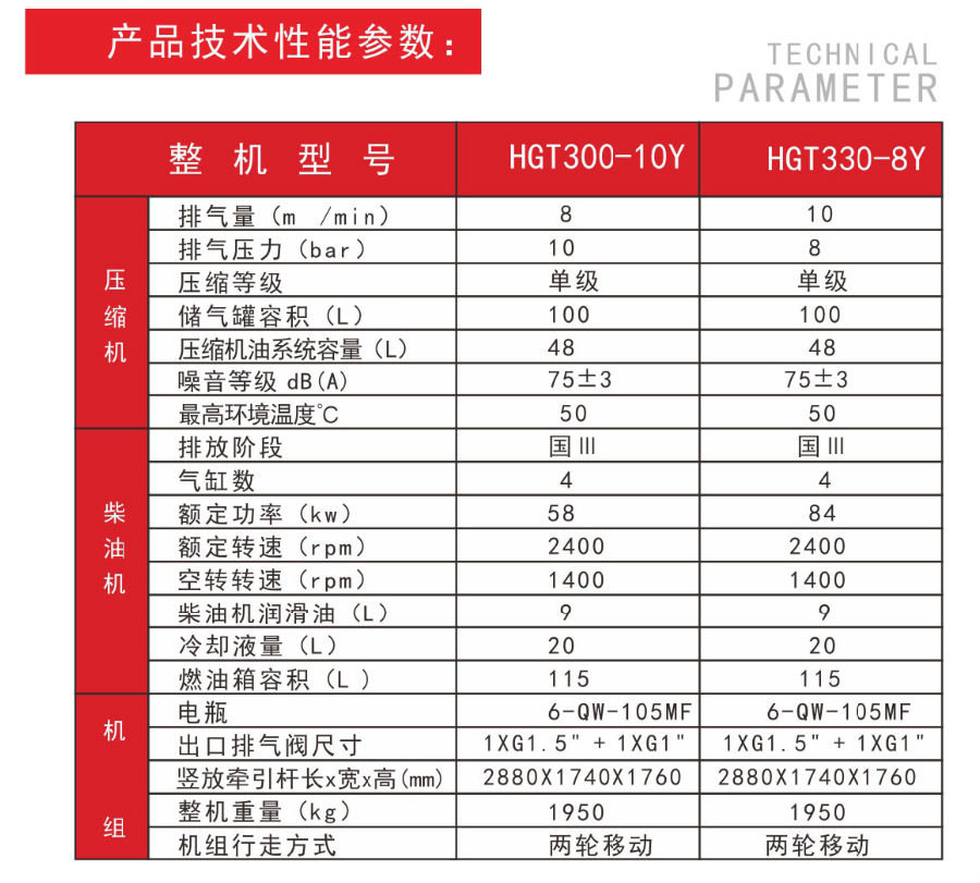 柴驅(qū)-HGT兩級(jí)壓縮高壓系列(雙工況)HGT700、HGT800、HGT950 柴移