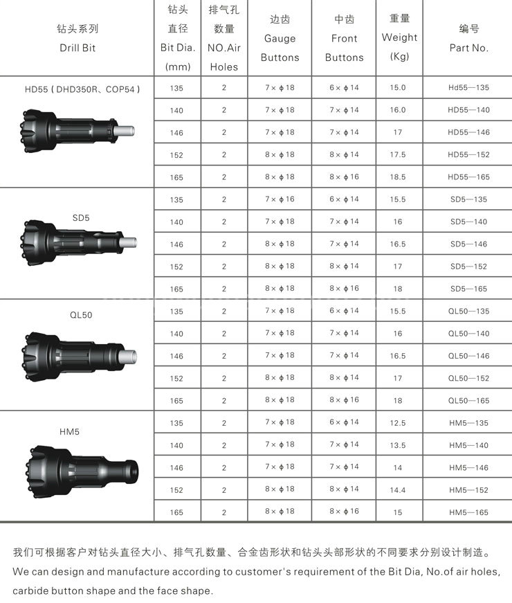 潛孔鉆頭系列