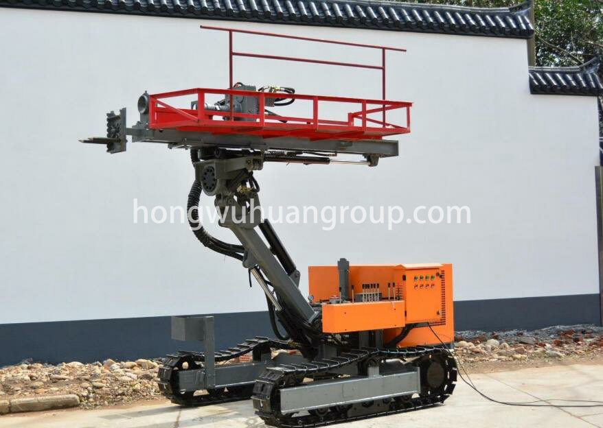 2、專利號(hào):201520072799.5 設(shè)有操作平臺(tái)的潛孔鉆機(jī)經(jīng)濟(jì)實(shí)用的操作平臺(tái),解決了鉆鑿高位水平孔傾斜孔拆卸鉆桿作業(yè)時(shí)操作人員無處站立的難題。