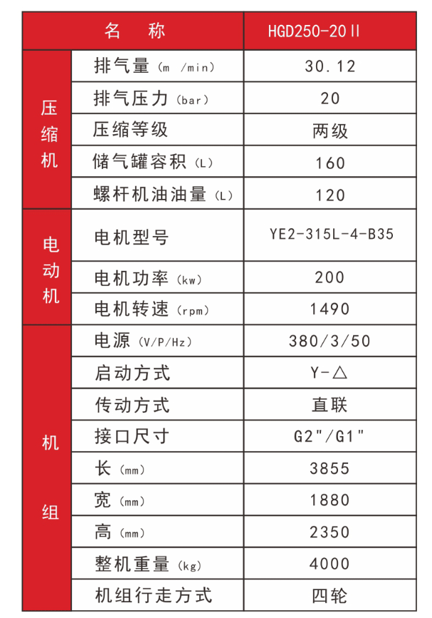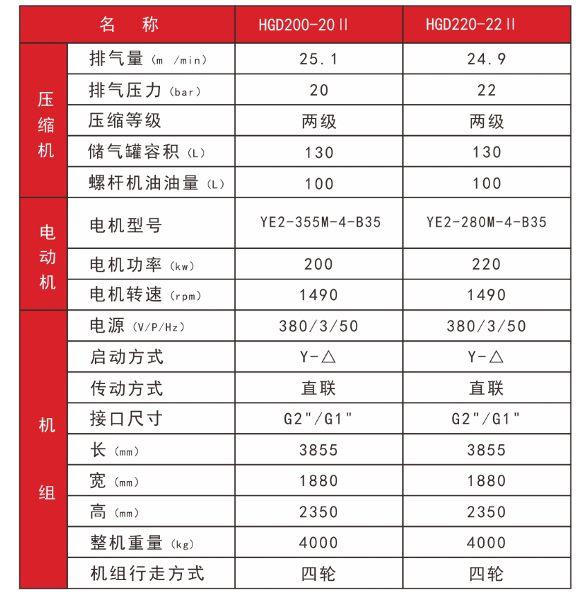 電驅(qū)-HGD兩級壓縮高壓系列移動空壓機 HGD200、HGD250 電移