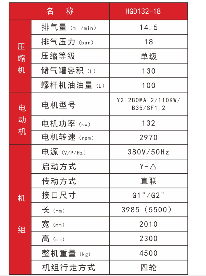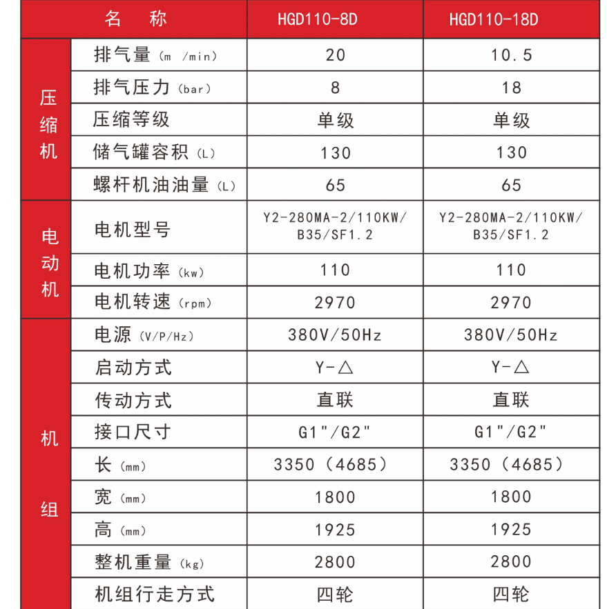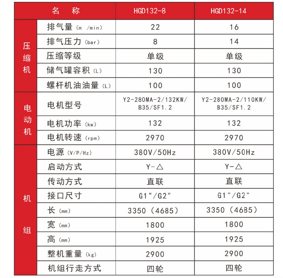 電驅(qū)-HGD中型移動(dòng)空壓機(jī)系列 HGD110、HGD132 電移